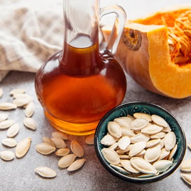 Óleo de Semente de Abóbora: Auxilia na regulação do trato urinário e oferece benefícios conhecidos para a saúde da próstata.